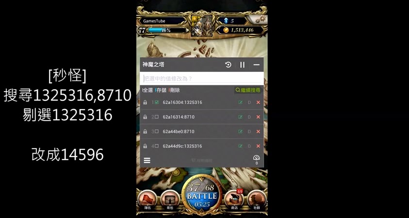 [秒怪] 先設定成聯合, 搜尋 [1325316,8710] 然後剔選[1325316]進行修改 , 改成 [14596]